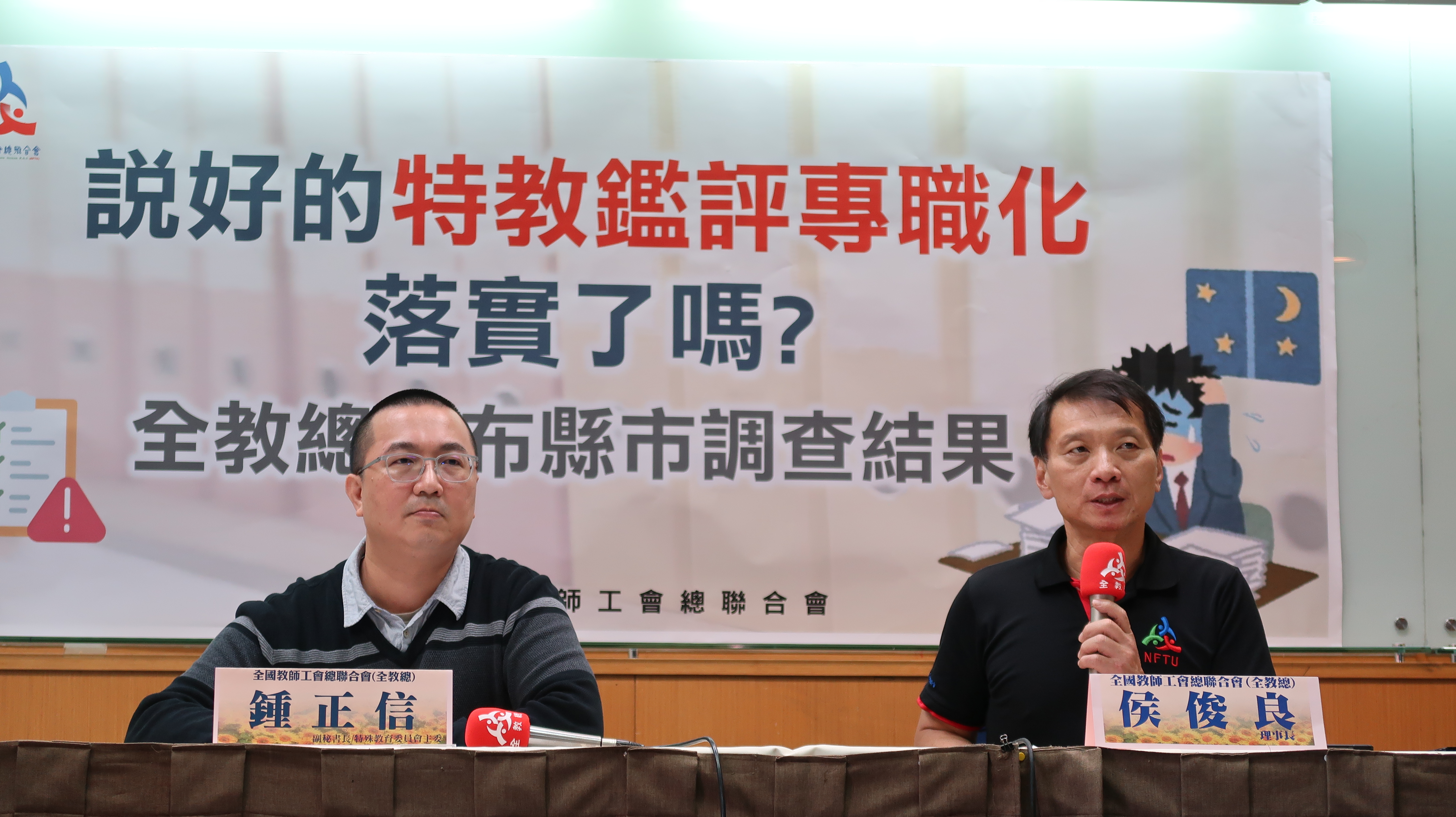 為改善國內特教教師長期處於教學與鑑定評估兩頭燒的困境,並保障特教學生受教權益,「特殊教育法」於112年修法增置專職鑑評員額與提供合理的鑑評待遇(註1)。為了解落實狀況,全教總在去(113)年首次進行調查,結果顯示全國各縣市落實狀況與法規存有不小落差,為此也召開過記者會批判並呼籲教育部及各縣市主管機關應正視問題並從速改善,以維護特教師生的權益。
